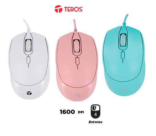 MOUSE ÓPTICO TEROS TE-1227S, 800-1200-1600 DPI USB4 BOTONES COLOR VERDE